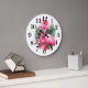 Same great clock with numbers added with a tropical feel of a flamingo bird art print.