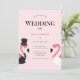 A wedding invitation with a flamingo theme. This invitation features a flamingo bride and flamingo groom. Simply add your information, add this invite to your cart, and enjoy your flamingo-filled wedding.