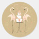 A fun, stylish wedding design with a retro touch. A pair of peach flamingos stand either side of a weddiing cake with peach hearts, confetti, gold rings and curves against a neutral brown colour-change background. A customizable design for you to personalise with your own text, images and ideas. An original digital art image.