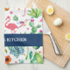 Flamingos And Colourful Tropical Pattern Kitchen Towel