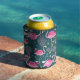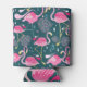 Flamingos Flowers: Dark Graphic Seamless. Can Cooler