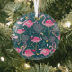 Flamingos Flowers: Dark Graphic Seamless. Glass Ornament