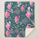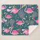 Flamingos Flowers: Dark Graphic Seamless. Sherpa Blanket