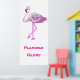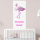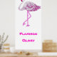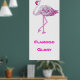 Mosaic, graphic drawing, of a Tropical, Flamingo bird, displayed in exotic, Abstract patterns-in colors of, bright-pink, violet, fuschia, dark-brown, and black, against dark-gray, background.
