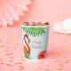 Beautiful flamingos, hibiscus and palm leaves on light blue Birthday Party Cup. Text can be personalized for any occasion.