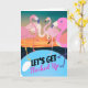 Let’s Get Flocked Up, paper invitation greeting card with flamingos around a water hole with a sunset sky. Customize text on the cover and inside the card with your party event information. Art. Image, and verse copyright © Shoaff Ballanger Studios, 2022.