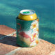 Flamingos on a Teal Tropical Beach Design Can Cooler