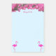 Flamingos and tropical magenta pink flowers on light blue Notes. Text can be personalized. Flamingos can be exchanged for your favourite logo or image.