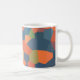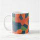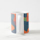 Une tasse à café attrayante, avec un motif abstrait aux couleurs vives - Flaming Orange, Midnight Blue et Deep Green, d'un design numérique de Judy Adamson.