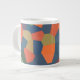 Un café Jumbo de taille Jumbo ou Soup Mug, avec un motif abstrait aux couleurs vives - Flaming Orange, Midnight Blue et Deep Green, d'un design numérique de Judy Adamson.