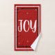 Apportez l'esprit de Noël et l'esprit festif à votre décor de bain pendant la période des fêtes. Avec le libellé, Joyeux Noël, Joie, Joyeux et Lumineux en texte blanc. Arrière - plan rouge à rayures blanches et noires et un scintillement de flocons blancs. Amusant design géométrique et tendance. Conception originale © TamiraZDesigns.