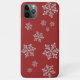 Des flocons de neige en cristal brillant illustrent ce coque iphone rouge canneberge, ce qui en fait un accessoire parfait ou un cadeau cette saison de vacances.