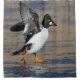 Male Goldeneye duck flapping his wings on ice.Photo by ruth jolly see also matching products.