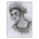 A fun black and white close up pencil sketch of a 1920's Art Deco Flapper Girl in a simple cap with a bow.