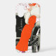 The feature on this unique personalized phone case is of a 1920's era flapper girl wearing a bright red dress and hat, road goggles, and white fur. She is leaning against the front of a roadster and applying her lipstick. The image is placed on a pink and white polkadot background. Your name or other text is added in white on the black front of the roadster, or, if you prefer, you may remove the text by blanking out the field.