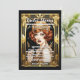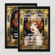 An ornate faux gold art deco style frame has a black inlay on which white templates for your personalized wording appear. A beautiful Flapper girl with short red hair is wearing a golden sleeveless formal top and a close fitting headband. She is framed by an elegant and intricate art deco vintage style frame and her hair appears to sparkle and shine. The design is suited to 1920's theme parties; art deco themed celebrations or Great Gatsby bridal party and corporate events. They are perfect for both business and personal use. The back has the same graphic with a template for your heading or additional information.