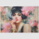 Channel the sultry elegance of the Roaring Twenties with this decoupage tissue paper featuring a glamourous flapper adorned in pearls, gold accents, and a bold floral headpiece. With a cigarette holder in hand and a dreamy haze of painterly florals in the background, this vintage-inspired design is perfect for upscale bar décor, jazz-era events, speakeasy crafts, and feminine glam DIY projects.