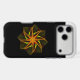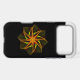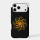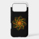 A radiant star-like shape blazes from the center of a black case, with eight curved flame-like arms in vibrant orange and yellow. Surrounding it, layered squares in green and red form a dynamic geometric frame. Flare Core fuses fiery motion with abstract symmetry—ideal for fans of bold, energetic design.