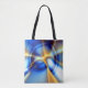 Flashy blue and yellow and snail-like lines throw tote bag