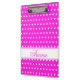Flashy Pink With Cute White Hearts, Custom Name Clipboard