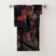 Flashy red blots on dark grey rocky base, texture bath towel set