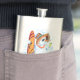 The product is a good size and came exactly as it was pictured.  The lid is not attached to the flask, which could be dangerous on drunken nights... The print came out surprisingly well and looks very sharp.  Would definitely recommend.