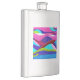 Paysage abstrait coloré de collines et d'un océan aux couleurs rose, violet, bleu, vert et cyan.
