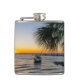 Flasque représentant un coucher de soleil à Gulf Breeze, Floride, États-Unis avec la silhouette d'un palmier penché et un voilier épave dans la région de la baie de Pensacola. Vous cherchez d'autres produits ? Visitez ma boutique : http://www.zazzle.com/timelessmomentsphtgy