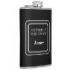 Un flasque enveloppé de vinyle est présenté dans une couleur unie noire avec un exemple de nom du père du marié.
