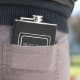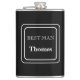 La flasque enveloppée de vinyle est présentée dans une couleur noire unie avec un exemple de nom de témoin.