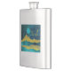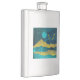 Paysage montagnard Abstrait aux tons audacieux d'or, de cyan et de bleu avec un lever de lune, des étoiles et des oiseaux.