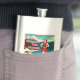 Pendant que vous êtes en train de courir, il nettoie la cuisine à la maison, vous avez gagné le jeu. Ce design amusant montre une femme à l'allure désuète courant dans les montagnes dans le style d'une affiche de voyage vintage.