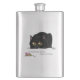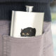 Chat noir sur le point de rebondir et de faire le "cul de chatte se balançant". Souris de jouet près du chat noir.