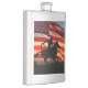 Image patriotique d'un cheval de cow-boy et d'un grand drapeau américain. C'est un grand pays western cowboy rodéo thème flask.