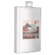 Paysage de montagne en rouge et bleu avec un lac et un arc-en-ciel bleu gras.