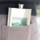 Ce paysage d'imaginaire est dans de belles couches texturées et des nuances de turquoise et d'aqua avec un soleil, des collines et des montagnes.