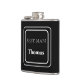 Un flasque recouvert de vinyle est présenté dans une couleur unie noire avec un exemple de nom de témoin.