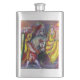 Elégante, lunatique, peinture artistique avec magie colorée de la nuit, la lune, féeries, chevaux en bleu turquoise vif, rouge, jaune, couleurs blanches.Peinture acrylique sur toile, peinture mixte de média avec feuille d'or et d'argent.