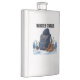 Minimalist winter gear illustration with backpack, boots, beanie, and text "WINTER TRAILS." Cozy outdoor adventure art.