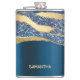 Belle bande de marbre lisse et faux, dans un noir; bleu marine et bleu cobalt sont bordés de parties scintillant en faux or qui semble briller et briller et a un texte modèle pour votre nom. Cet arrière - plan motif abstrait est idéal pour les mariages bleus et dorés, comme cadeau de jour de la mère ou pour une femme spéciale. Personnalisez le nom et donnez-le à votre fête de mariée