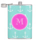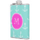 Flasques Ancres blanches à la menthe, Monogramme rose chaud