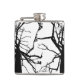 Cette fiole de hanche présente un motif abstrait artistique, noir et blanc du sommet d'un tulipe en hiver avec des branches nues en silhouette.