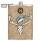 Basse de saut Grande Rack Cerf Crâne Boire Flacon. Changez la lettre du monogramme et personnalisez-la ! C'est le cadeau parfait pour le chasseur et le pêcheur ! Cette conception de crâne de cerf de sonnette a été dessinée à la main et l'eau colorée par ©Tina Hesskew de Fishing Hunting Life.