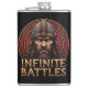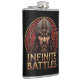 Un design audacieux et dynamique avec le texte "Batailles infinies" dans une palette de couleurs viking traditionnelles, rouge et or. Les mots sont disposés dans un style puissant et angulaire, rappelant les runes anciennes. L'arrière - plan est une surface texturée et patinée, ajoutant un sens d'authenticité et une signification historique.