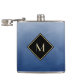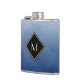 Attirer l'attention avec cette fiole de monogramme bleu et noir élégante. Cette conception simple et sophistiquée de dégradé brossé avec un cadre moderne en forme de losange avec une bordure en or peut être personnalisée en ajoutant votre initiale monogrammée. Impression plane, NON métallique.