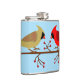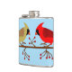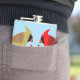 Cette magnifique flacon de hanche de Noël présente une jolie paire de Cardinaux du Nord. L'oiseau mâle est rouge vif avec une crête rouge sur la tête et l'oiseau femelle est de couleur jaune brunâtre avec un peu de rouge sur ses ailes et la queue. Les deux oiseaux ont un bec rouge. Les oiseaux sont debout sur une branche brune recouverte de baies rouges festives, ce qui en fait un beau décor de Noël, surtout pour les couples.