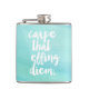 Prenez le jour — et votre libation préférée — avec ce flacon avec "Carpe that Effing Diem" en typographie manuscrite de brosse sur un arrière - plan d'aquarelle turquoise estivale. Coordonner les articles disponibles dans notre boutique !
