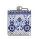 Ce modèle de flacon est orné d'un motif en carreaux de style talavera mexicain bleu et blanc traditionnel. Fait un grand cadeau aux groomsmen.