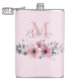 Chic botanique floral élégant plantes feuillage gris rose blush fleur monogramme cadeau flasque demoiselle d'honneur.