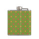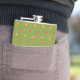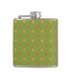 Un Hip Flask chic, avec des Pois dans les tons rose, orange sur un arrière - plan vert. Les couleurs sont coordonnées avec la collection Posh & Painterly 'Poppy Fields' de Judy Adamson.